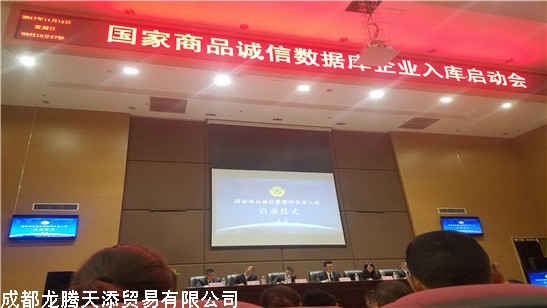 2017年11月12日,國家商品誠信數據庫企業入庫大會在四川省雙流中共黨校勝利召開。國家商品誠信數據庫服務中心主任張國良、常務副主任熊珂、副主任曾艷、秘書長鄒偉、各職能部門領導出席了本次會議,全國各地各申報機構負責人、入庫企業、預備申請申報機構的單位等各界社會人士參與了此次會議,本次會議中成都首家食品廢料回收處置機構-《成都龍騰天添貿易有限公司》董事長:張進先生出席本次啟動儀式。